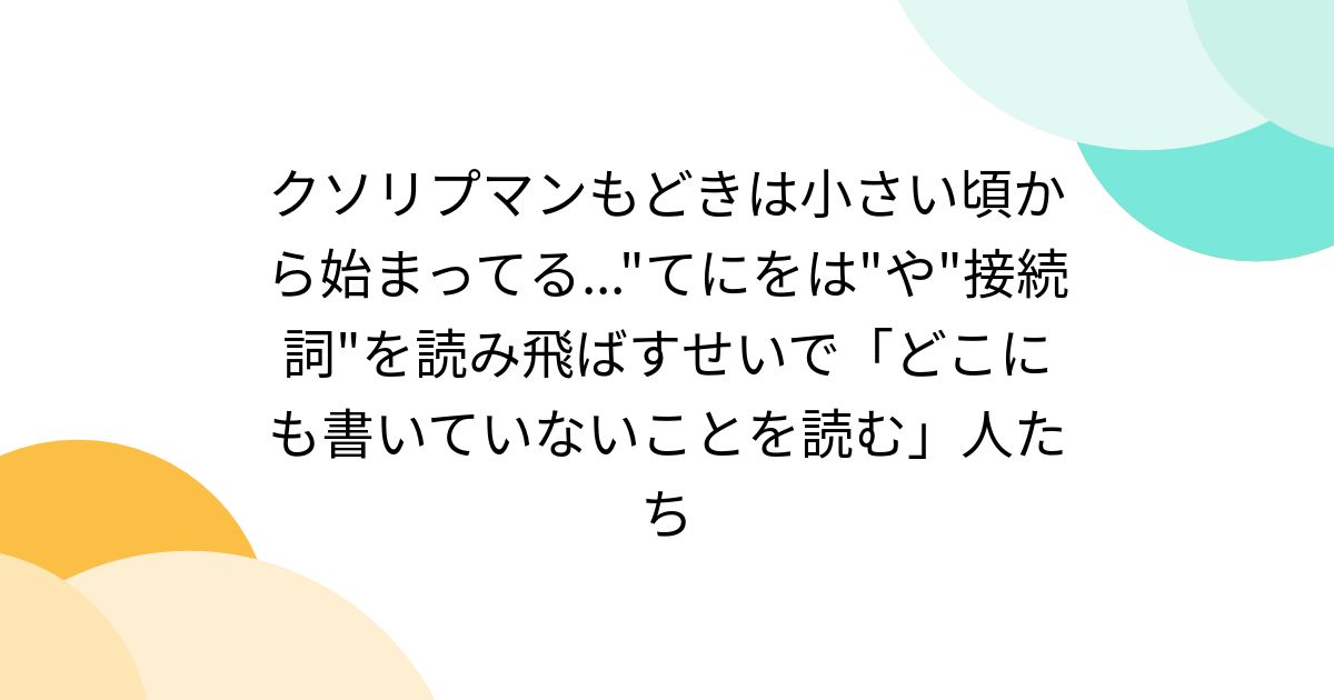 頭の良くない人って、テキスト読ませると「書いてないことを読み上げる」んだよね。てにをは、接続詞、助詞など細かいところまで丁寧に拾って読めないの。雰囲気で読んでるの。だから私は家庭教師や塾講師、知人の子の勉強を見る時はまず一番最初に「教科書声に出して読んでみて」って学力チェックする